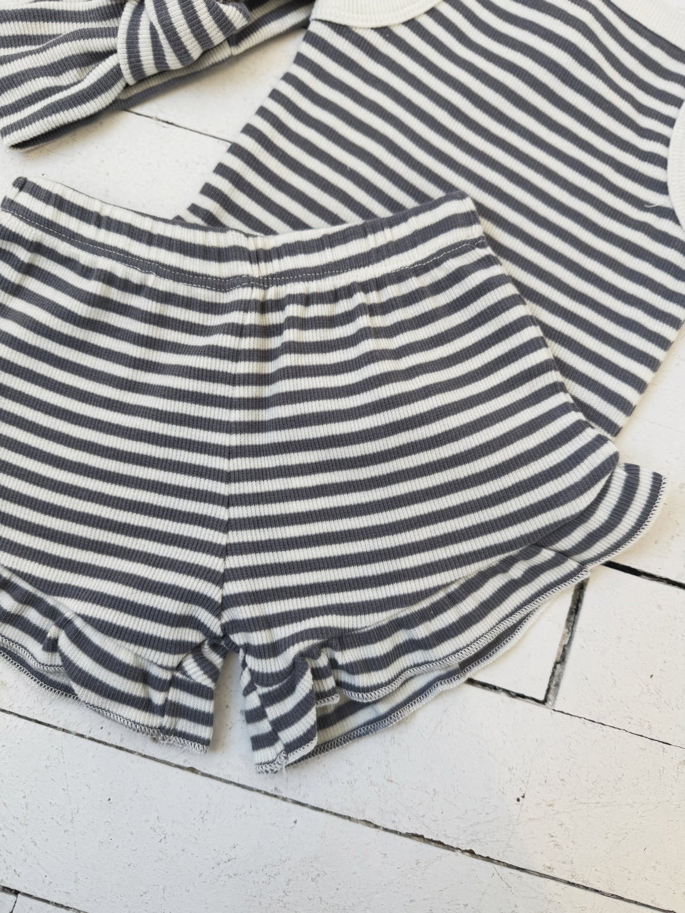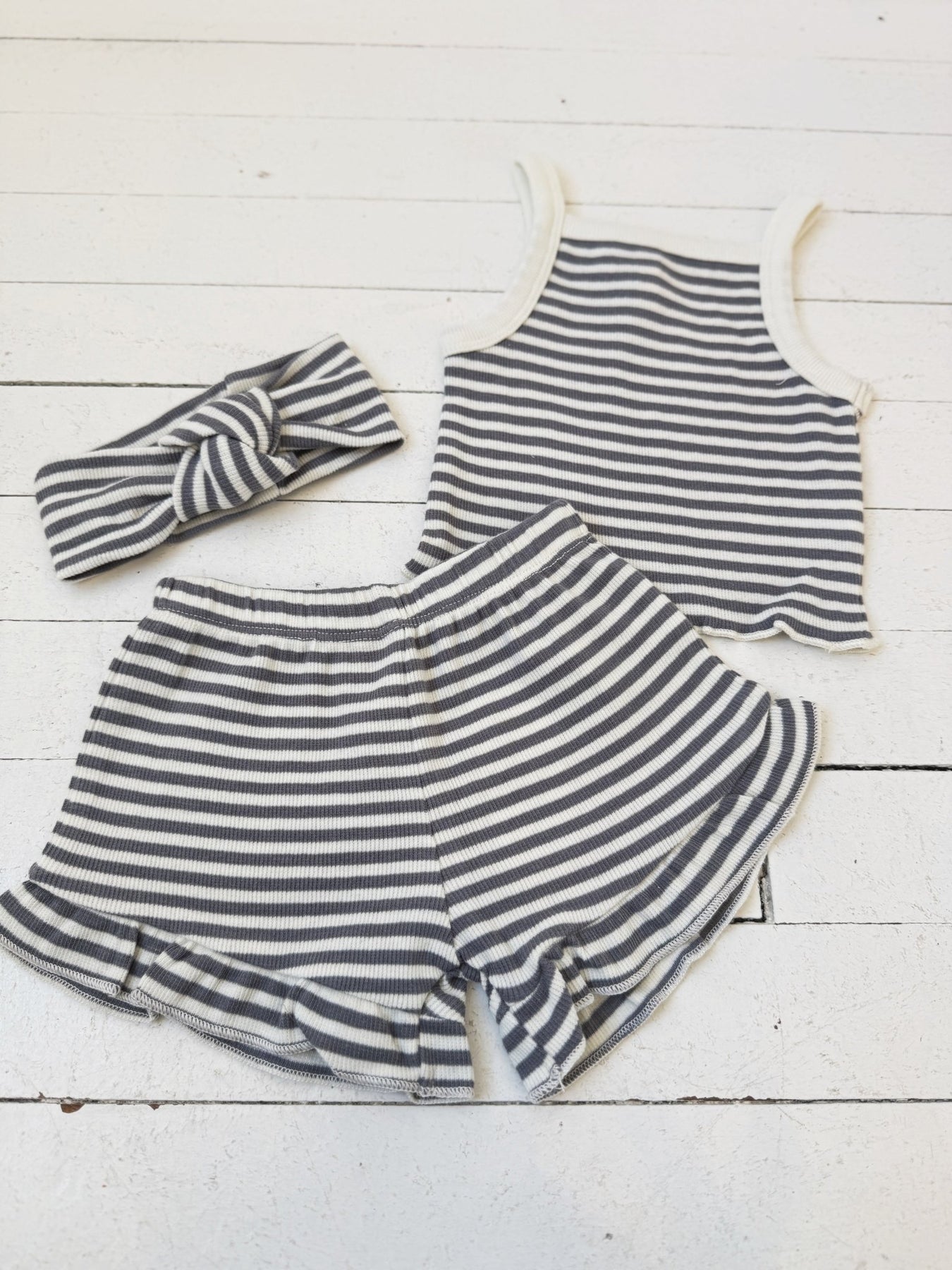 A favorite for this season! With an elastic waistband and ruffle detail, they're perfect for warm summer days. 95% organic cotton, 5% elastane. Machine wash cold. Tumble dry low.