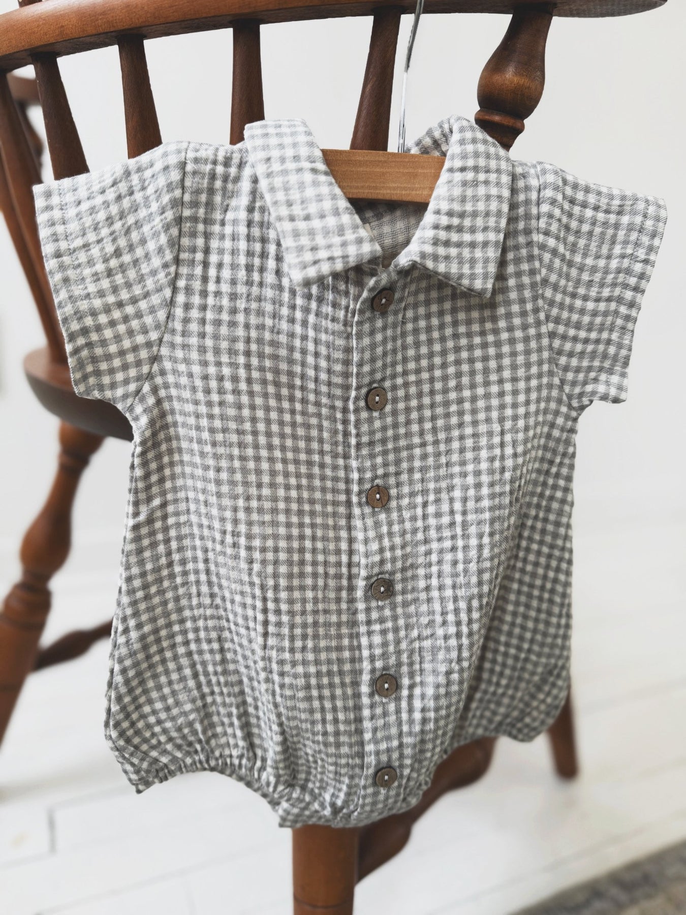 This bubble romper is the perfect look for the most elegant occasions. Made from soft cotton, this classic fit features a fold-over collar, coconut buttons along the front and hidden bottom snaps for easy changes.