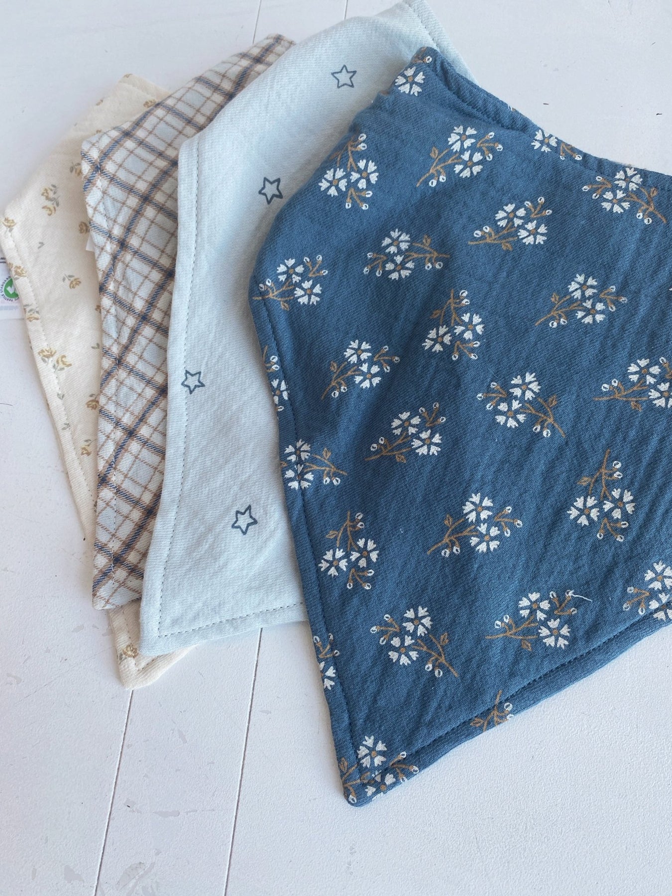 This scarf bib is a fun take on a cross between a scarf, bandana and bib, with snaps in the back for the perfect fit.