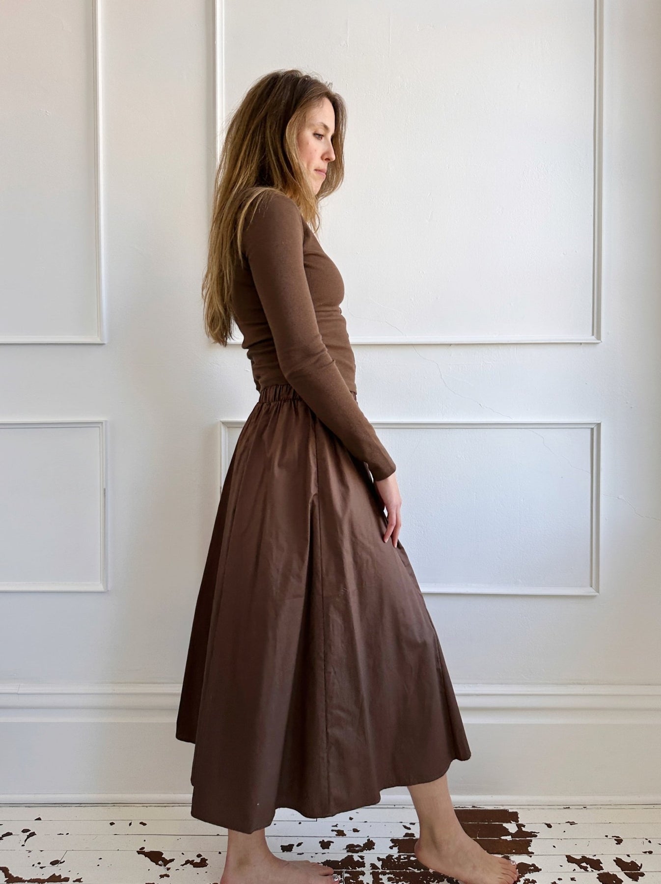 Light, airy, and effortlessly versatile, this cotton midi skirt falls in a flattering A-line silhouette. Perfect for layering or wearing on its own, it’s a timeless piece that balances casual ease with subtle polish.