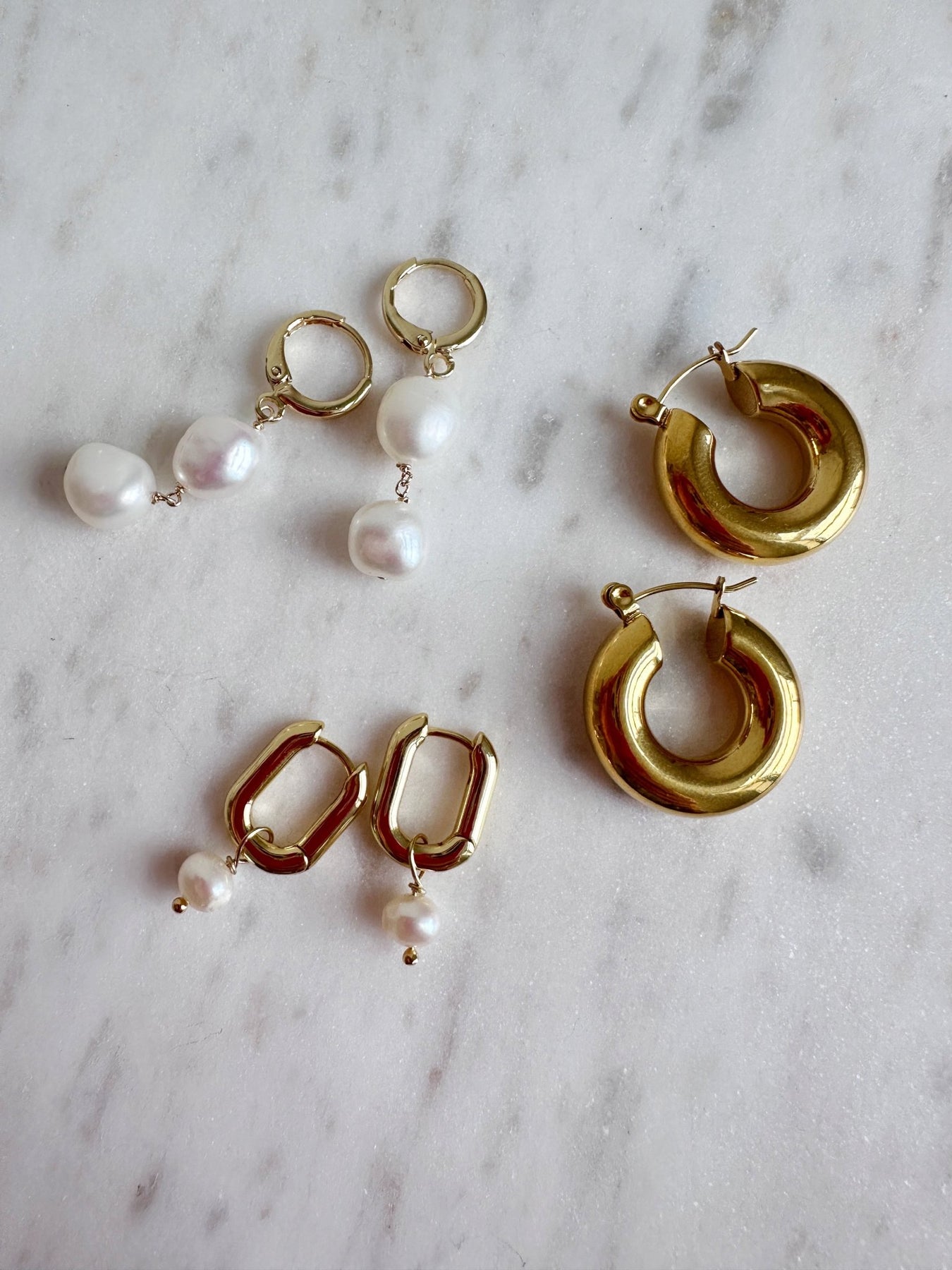 Double Pearl Hoops, Gold Plated - Spring Sweet