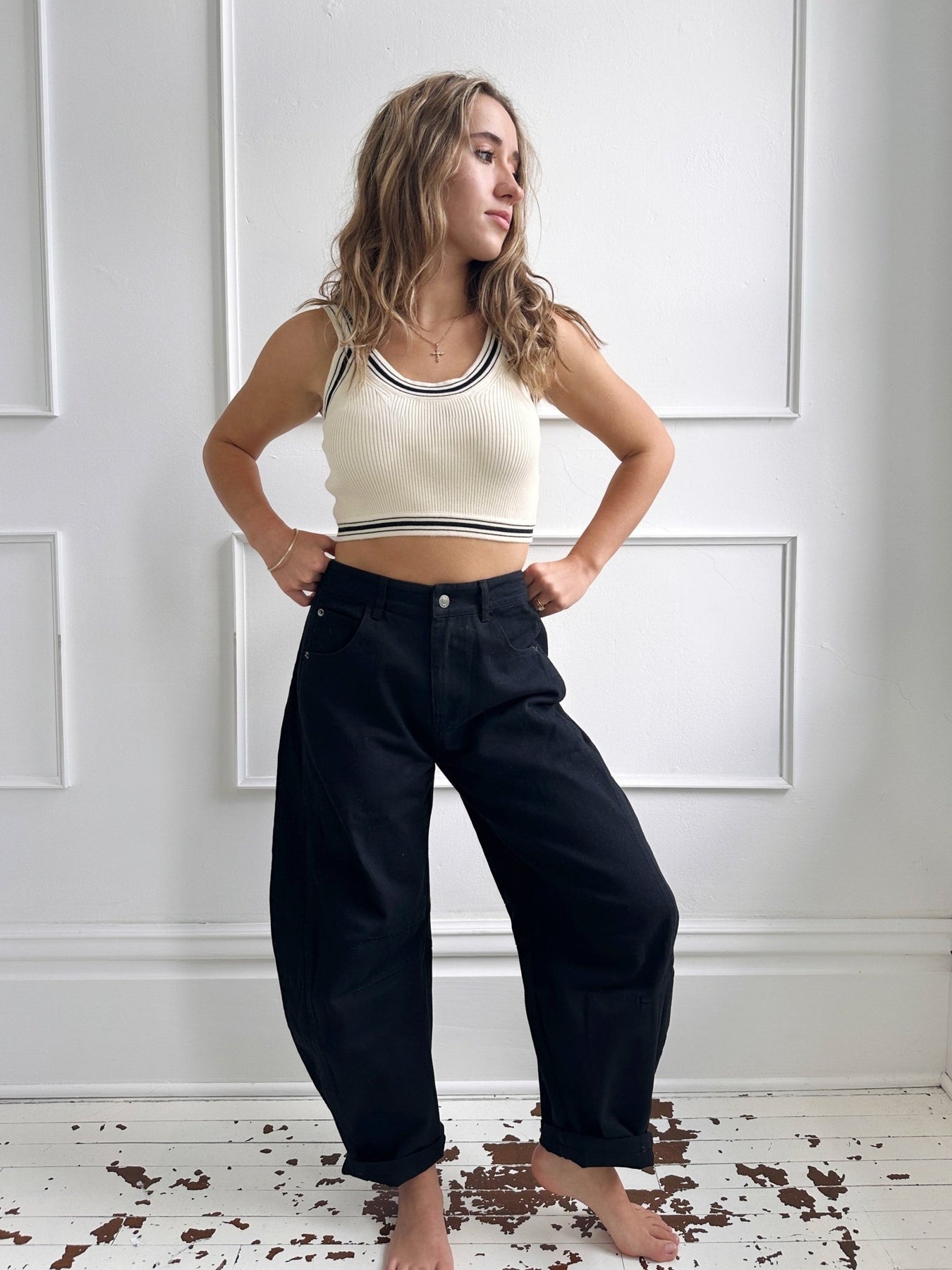 The perfect transitional top for back to school. Where sporty meets preppy in this knit crop tank, finished with contrast stripe trim for a polished twist.