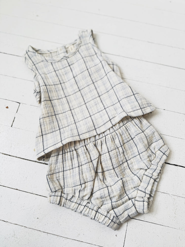 Simple summer set featuring our relaxed fit tank with a button back closure, and matching shorts.100% organic cotton. Machine wash cold. Hang to dry.